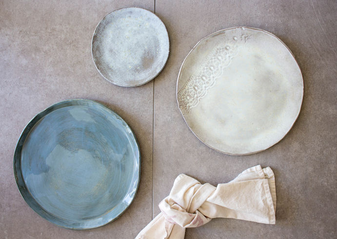 Een workshop bestaat altijd uit twee delen. In het eerste deel werk je aan de vormgeving. Met klei of spikkelklei ontwerp je je eigen persoonlijke handgemaakte setje. De klei bepaalt mee het eindresultaat van de kleur na het glazuren. Met behulp van gipsmallen geeft je de klei de vorm van borden, kommen of mokken in verschillende formaten. Je staat er uiteraard niet alleen voor. Ik begeleid je doorheen het proces.